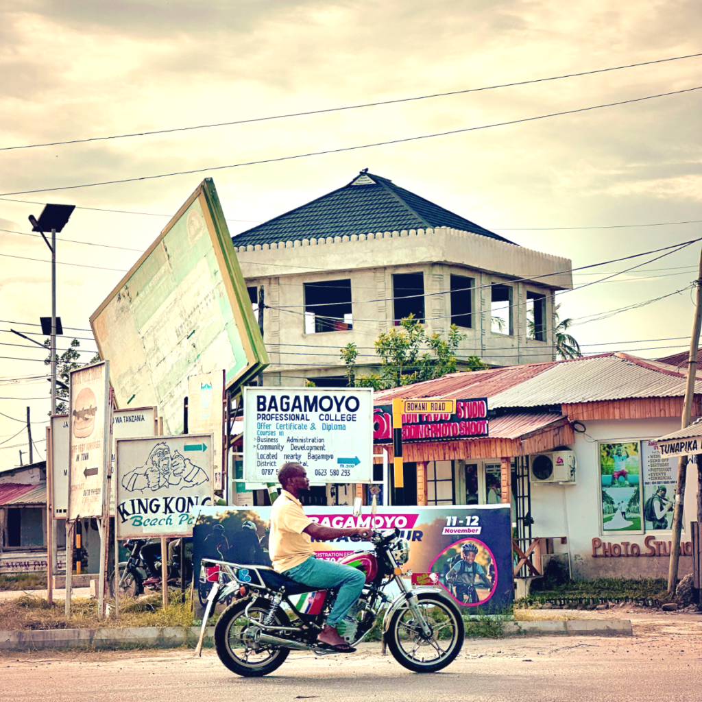Wir fuhren mit einem Bodaboda (Motorrad) in unser Restaurant um etwas zu trinken, wir waren nach der Warterei am Verdursten.