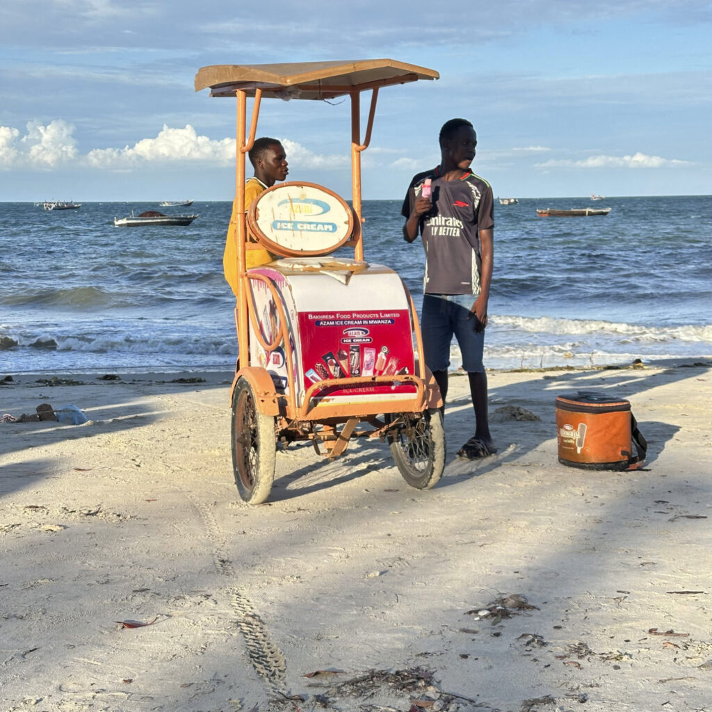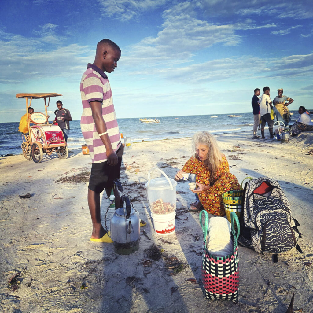 Zum Abschluss von diesem Badeausflug, sollte es noch einen heissen Kaffee geben, welche am Strand immer wieder angeboten wird. Dabei werden zwei Tassen frisch im mitgeführten Wasser gespült, sehr heissen Kaffee aus der konstant beheizten Kaffeekanne eingegossen und der Verkäufer wartet geduldig, bis der Kunde sein Kaffee geschlürft hat und nimmt im Anschluss die leeren Tassen wieder entgegen. So geht das in Tansania.