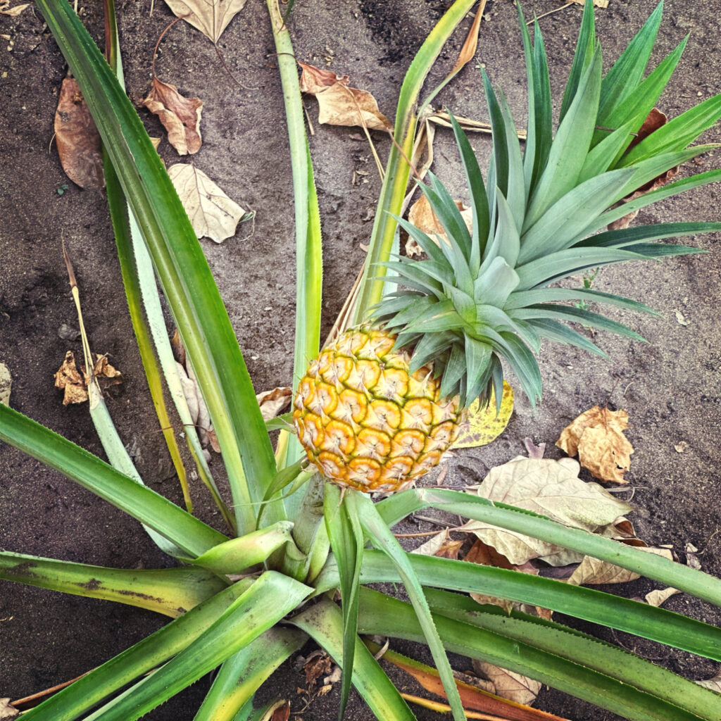 Am 24. Mai 2024 erhielten wir von Salim die ersten Ananas Strunke zum einpflanzen. Seither pflanzen wir auch fast jeden Strunk von gekauften Früchten. Bisher haben sich damit ca. 20 Pflanzen in unterschiedlichem Wachstumsstadium ihren Platz im Garten gefunden. Die nächste demnächst reife Ananas stammte aus einem Strunk, von einer gekauften Frucht. Es ist schon verrückt wie pflegeleicht diese Pflanze tatsächlich ist. Bisher haben alle gepflanzten Strunke wurzeln geschlagen und wachsen, langsam aber stetig heran. Bis sich Blüten und damit eine Frucht bildet, dauert es aber mindestens 1.5 Jahre. Danach geht es schneller, bis zu einer ausgereiften Frucht. Super Sache.
