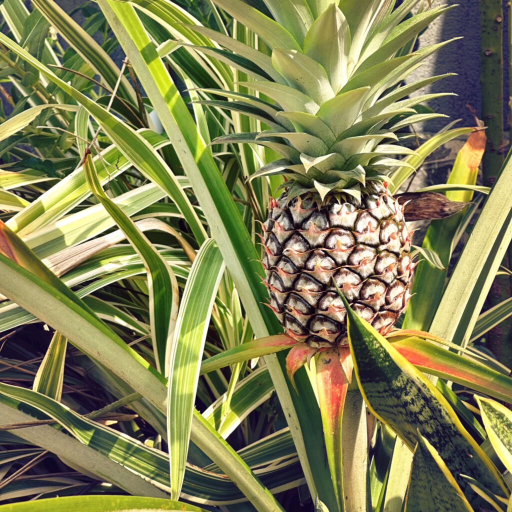 Nach fast zwei Jahren, dürfen wir unsere erste Ananas aus unserem eigenen Garten ernten. Frisch und reif direkt in ein Früchtemüesli, köstlich.