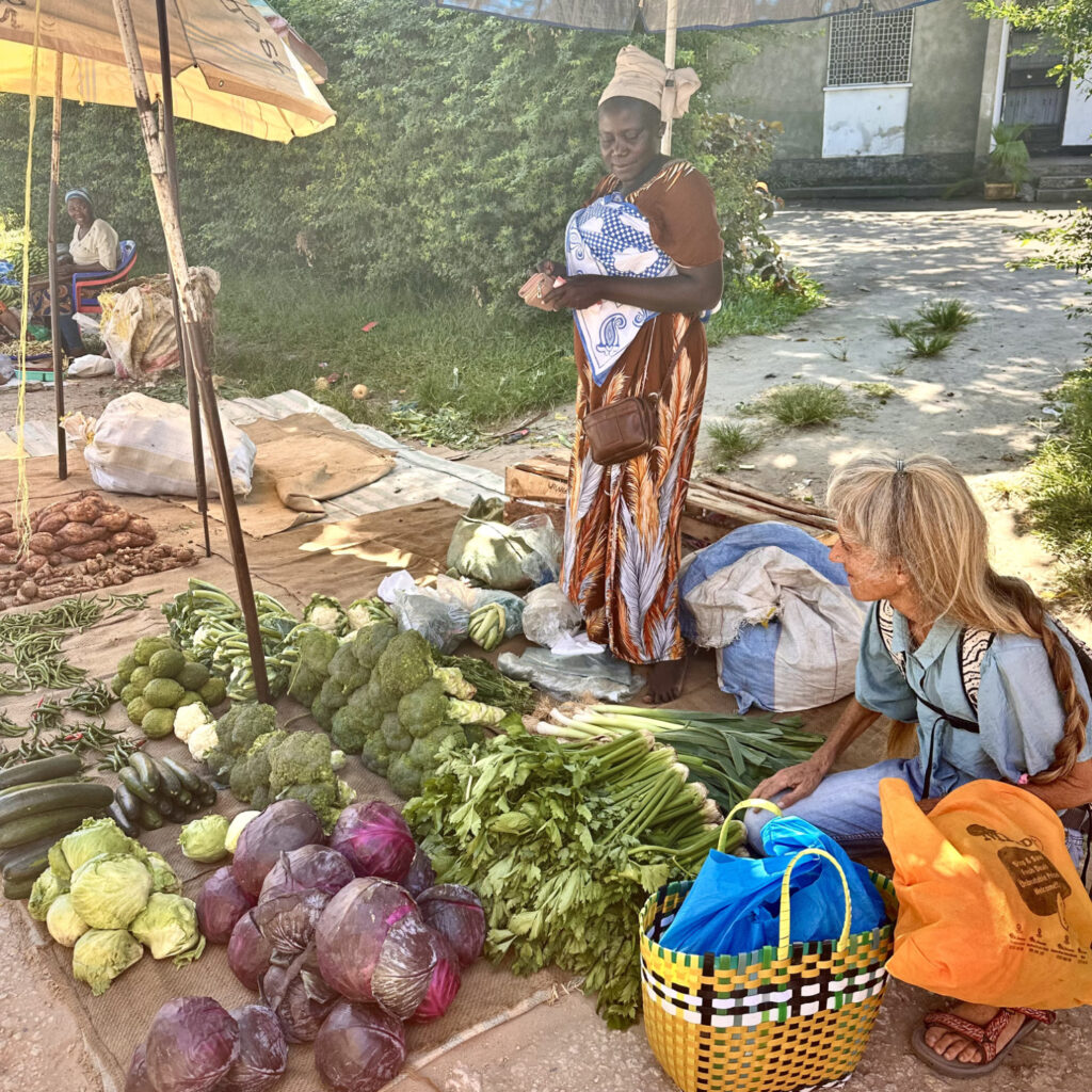 Immer Montags gibt es einen Wochenmarkt in Bagamoyo, wie bereits schon einmal erwähnt. Wenn wir Gemüse brauchen, welches sonst nicht erhältlich ist, gehen wir auf den Wochenmarkt. Neben frischen Erbsen, Lauch, Broccoli, Zuccini, Randen, Sellerie etc., gibt es immer etwas für unsere Küche zum einkaufen. So auch heute, mit Blumenkohl, Lauch und Zuccini waren unsere Taschen gefüllt.